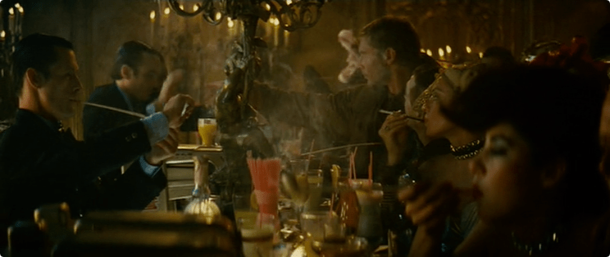 The scenes in which we see Taffey Lewis’s nightclub are short, but interesting to see the bustle and color of human social life. I don’t think we learn a lot from these scenes, but I do think the hair, hats, and makeup comment on the underlying humans-versus-androids thread: